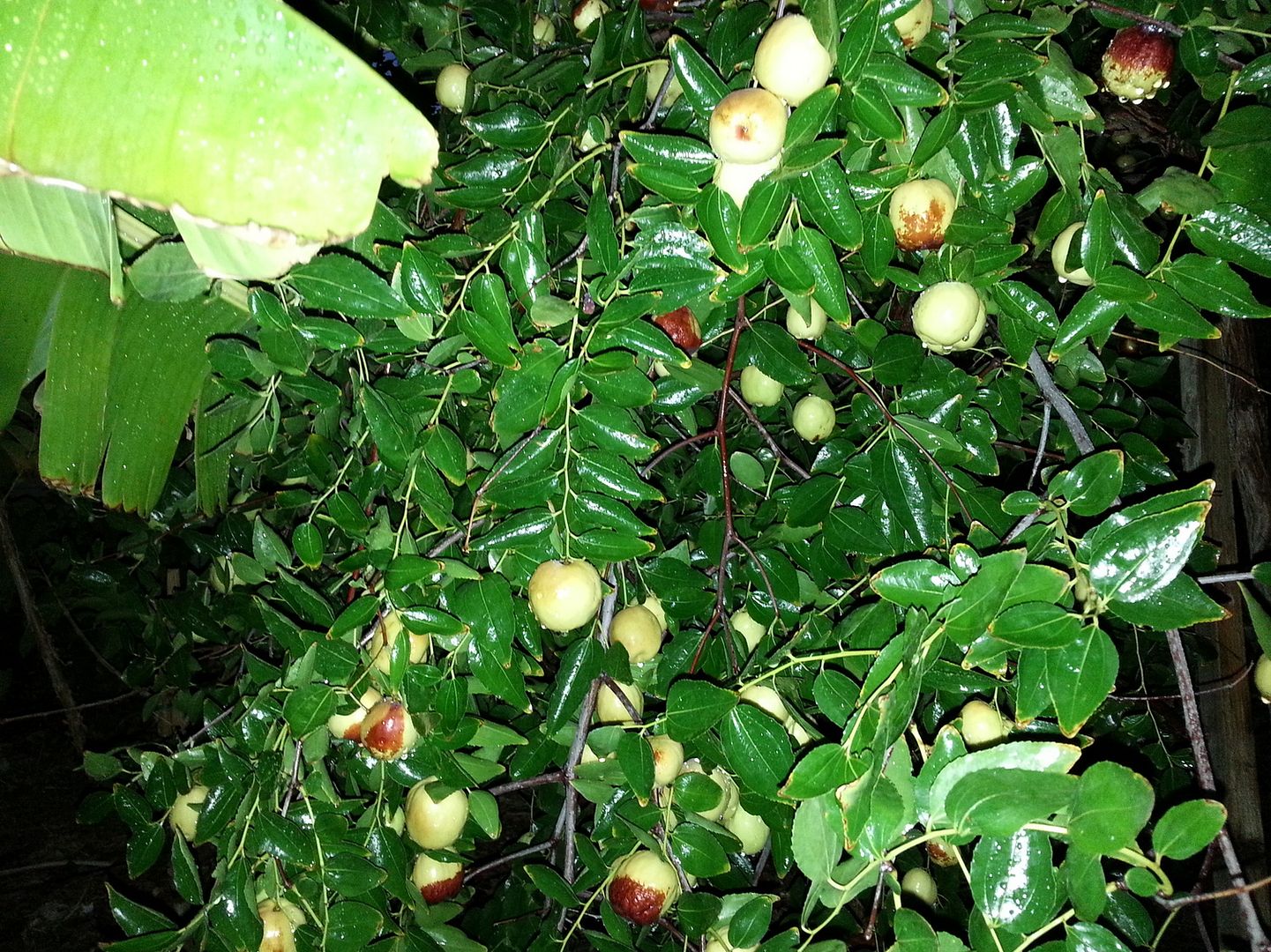 I have a space that's about 10' x 10' at the southwest corner of the house. Because of its location, the east side of the space is blocked by my house, same for the north side. The ground is covered with colored concrete, save for a 4' diameter circular portion where a stone fountain currently sits on dirt. I have a bunch of plumerias growing in-ground around the fountain. In the winter months, the south and west stucco walls get pretty warm during the daytime and stay warm longer after nightfall, so the trees in this space are not affected by the cold temps so much.
