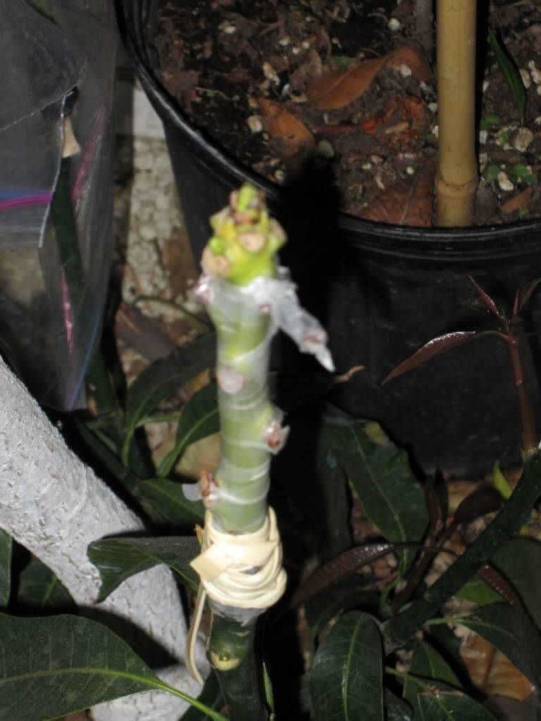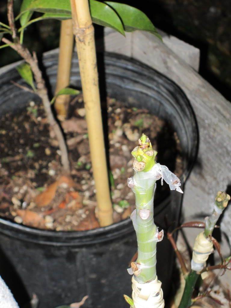 The leaves below the graft is kept tipped...to not weaken the graft above!