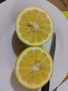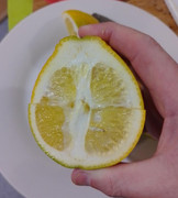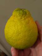 It peels reasonably easy even though the fruit was unripe. The juice vesicles are firm, like a pomelo, and the membranes are very thick. The fruit was not fully ripe, but tasted sort of like weak grapefruit / mandarin flavour, slightly more sweet than sour.