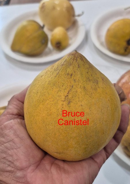 Mine definitely has the pointy-heart shape and looks exactly like the ones I had in Hawaii, and the pictures of Bruce I see. I picked Bruce because it looked the most like whatever canistel I tried the first time and really liked. I got mine from TopTropicals also. I have been thinking about getting a grafted Ross... so if you become convinced you received Ross instead of Bruce I'll be happy to trade budwood with you.
