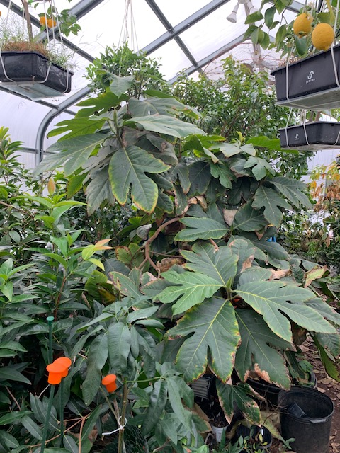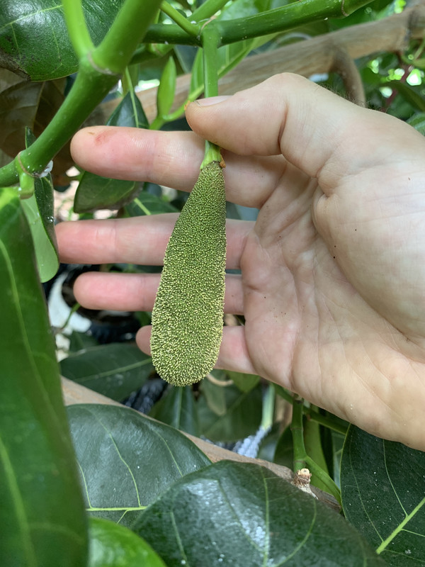I still have my container kwai muk, which is nearly the same age as the in-ground tree but a tiny fraction of its size - 3-4ft tall in a 3gal container. It is doing okay I guess but artocarpus really seem happier in the ground. I'm not really sure why I've kept it, I have been using it as a guinea pig to test spray concentrations, cold hardiness, drought tolerance, etc.