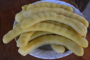 Fruit: big fruit, flat with a curve like the letter C, thick skin, golden brown