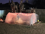 I was able to constantly keep this tented mango 10* above the unprotected trees. Fairly tight wrap around the bottom and green shade cloth loosely covering the top; two strings of C9 Xmas lights around the bottom inside.