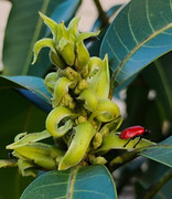 Hello fellow mango lovers and growers. Blooms have been popping here, at least on Sugar Loaf and Edward, maybe a few Glenns and Ceci Love. It rained 1.5 inches yesterday, and woke up to about 60F. Perfect time to treat; sprayed sulfur and kelp extract late this morning on the emerging blooms and leaves, will do every 7 - 10 days for a while.