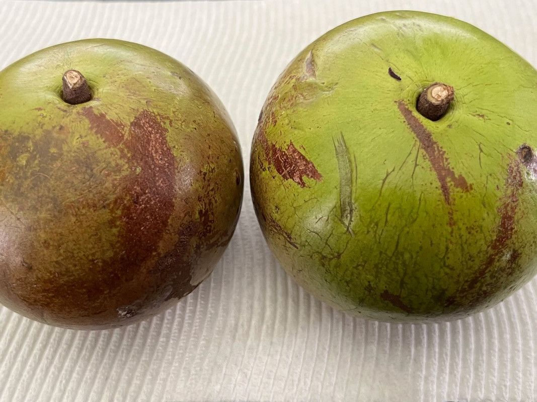 green skin Hipolito fruit turns brown when ripe and the fruit is larger than Lara Purple with more meat. The flesh around the seeds in particular is more abundant and overall the fruit is easier to consume than Lara Purple. Hipolito is not as distinctly sweet as Lara Purple, I rate the sweetness a 7 out of 10. The flavor is similar but more like lightly sweetened coconut milk with a subtle background flavor of banana. The taste is delightfully creamy and milky, like a melted coconut popsicle. If you like cow's milk and coconut you are going to love this. The closest fruit I have tasted is White Sapote.