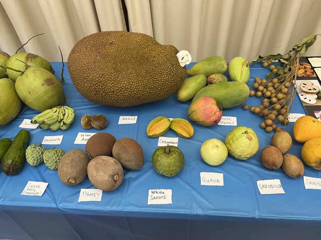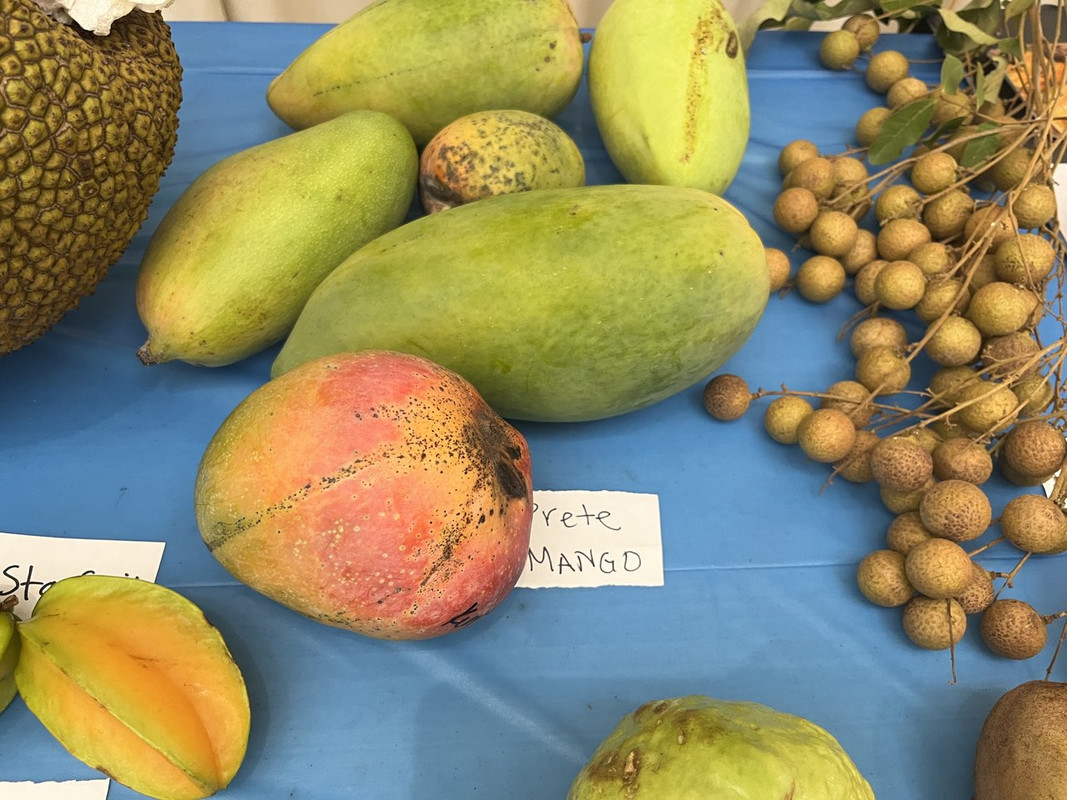 The Treasure Coast Rare Fruit Club pulled off an amazing event for a large number of guests. Congrats to Joe and Vall who I know worked very hard on getting everything just right so everybody could get a chance to sample rare fruit. The selection was vast, everything was pre-cut in satisfying portions, and all of it was labelled so you could identify your favorites. One side of the room had display tables of uncut fruit like this, including the Prete mango: