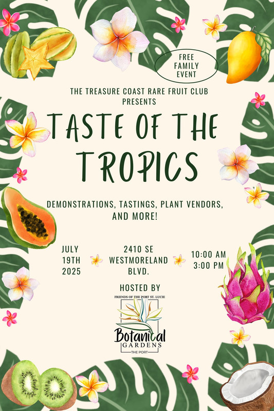 The botanical garden lobby is a large air-conditioned room perfect for this kind of event. Lots of people loaded up a tray with fruit and then enjoyed it while strolling through the outdoor gardens. Of the many tasting events I have attended this year, the Treasure Coast Taste of the Tropics was very near the top, a great experience and of course, free admission. If you missed out, make plans to attend next year. The fruit club members took great pride and extra effort to produce an outstanding experience for everybody, even the most experienced tropical fruit enthusiast.
