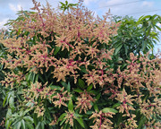 SL is showing better fruit set mostly on lower branches, and in patches. Southside is pretty good, but not on all branches/panicles. East side up high shows almost no fruit set, and this side gets the most sun and wind. Should be an okay season for SL, which would be fine with me. Not worried about it thanks to great fruit set on Edward and the Ceci Love branches that we have going. Lots of clean fruitlets.