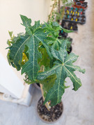 I never fertilized my papaya that much, every 60 days or so in our sandy soil seems about right, when I do fertilize I water thoroughly. Careful of regularly watering too much, they do not like wet feet, mulch liberally check soil moisture if you can at the pot drain hole before watering. If it's moist I wouldn't water.