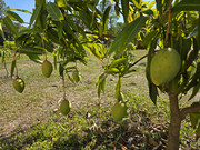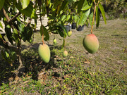 Picked a few Glenns and Orange Sherbets today. Critters have been eating 1 or 2 Glenns per day (can't bag em' all), so picking mostly green. It's fun debating with my teen whether or not a mango is ready for picking.