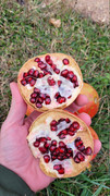 Flavor is sweet + tart, arils become darker the longer the fruit hangs. Seeds don't come true but fruit should be similar ~3-5 years to see flowers.