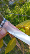 Emboss-O-Tags. These are cardboard sandwiched in thin aluminum. They are okay but I tend to botch the writing as you have to go slow and use a ball point pen. I end up using whatever pointy object I have nearby instead and they come out poorly. I wrote really slowly with a pen to make this one, usually they come out much worse for me. The visibility could be better and they tend to accumulate dirt and water scale. They cost more than Dymo tape but you don't have to buy the embosser. I don't use these anymore but the ones I created over the years have held up well enough