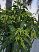 Lemon Zest is one of my favorite mangos but the Powdery Mildew severely inhibits fruit set and the PM also causes the new growth flushes to get distorted in shape. For those that can spray with sulfur every 7-10 days, pre bloom to fruit set, you can still get a good harvest from Lemon Zest. Also, for those living in an area with good air circulation such as at the top of a hill, you can get good fruit set without spraying.