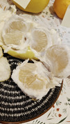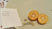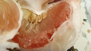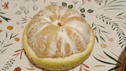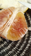 It has a typical white grapefruit smell and look. The colour is pale yellow like expected. Flesh is very juicy and tender. The taste is suprisingly mild. Probably it was sharper before standing for over two weeks. But it's still an enjoyable fruit. Acidity is low but just enough for me, bitterness is also low, barely there, just enough to make the taste a bit more interesting, not disturbing at all. Sweetness is moderate but as it's not a sour, bitter fruit, it's okay. Membranes are worse than I found with Amanatsu. I had to spit it out because I got tired of chewing in vain. So I tried to peel off all the membranes again. It's possible and that makes it easier to eat but the flesh is so juicy that the peeling process is very messy. I think it would be better for juicing. Overall, a good tasting fruit. A grapefruit that has barely any bitterness and I detect a little lemon/lime aroma, too.