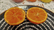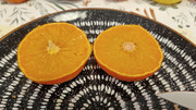Colour is beautiful. Flesh has a faint blood orange smell to me. Taste is very mild, somewhat sweet and a little watery. It's a mix of blood orange, mandarin and some pomelo, no surprise there. It's very high juiciness and tender flesh seem to be on par with Melogold. Segments can be eaten with membranes. It's possible to peel them off but it's very messy.