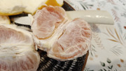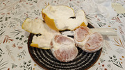 The pith is already a little pink at some places, which says there is some coloration in the flesh and indeed there is. Flesh colour is beautiful, a transition between white and all shades of pink. It has pomelo smell. Flesh texture is firm as expected, I can easily peel off all the membranes. Taste is more acidic than I expected. Melogold was apparently sweeter and not just in terms of balance but also quantitatively. The Brix reading backs it up. It has more complex aroma than regular storebought pomelos but I enjoy them more than this. Maybe another 3 weeks on the tree would have done good to this fruit. It's described as one of the best Thai pomelos and I can't see the reason why, based on this particular fruit. Maybe it's just not fully ripe. It's not bad but it lacks the wow factor for me completely.