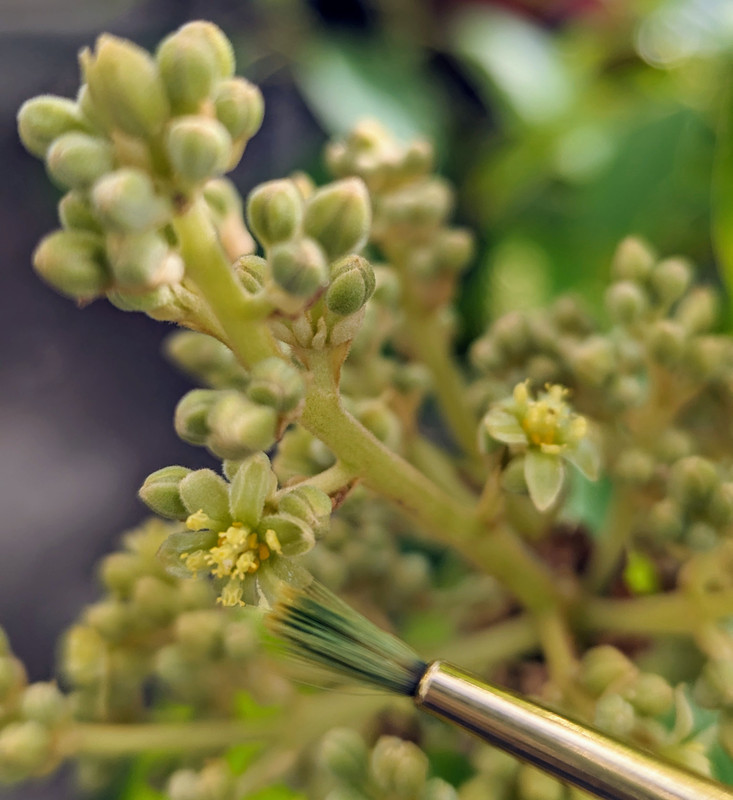 I did not get any fruit to set last year, but the trees are about twice as large now (9+ ft tall, 6+ ft wide), with at least 10x more flower buds in total, so I'm hoping for first fruit in the project this coming fall or winter. I've been out hand pollinating 2-3x daily for the last week or so, but things are just getting started in there. From today, this is Walter Hole: