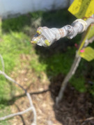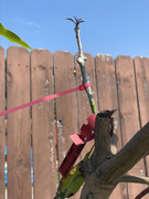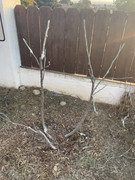 My in ground 30” ST has three trunks. The main trunk growth looks awesome. Green and strong. The other two short trunks have some issue with dry spots turning black and, ultimately, dropping leaves. The small white spots are dried seaweed extract and micros from my sprayer. Will this issue, if not corrected, spread to the strong trunk? Should I remove the two low vigor to save the strong one?