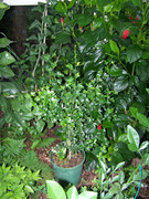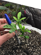 I just want to share with you a picture of a Calamondin X Poncirus hybrid that I created. It is slow growing but look healthy. This plant, and a very tiny sibling, were the only seedlings of that year that grew under hot summer conditions in full sun and in mostly moist loamy soil. Root development was good. No signs of root rot at all. They did not grow well in half shadow and under cool conditions. Yet, they had no root problems under these conditions, either. The last growth, as you see, was not finished before winter. That is the reason for the yellow leaves.