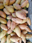 The fruit flesh is also stringy, the texture of the fruit is rather rough, the taste is sweet, slightly sour, and has a distinctive aroma. Another drawback of the Kasturi mango is that the flesh is not thick because the seeds are quite large.