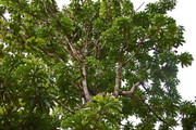 Large straight-trunk tree, can reach 30-35 m. The bark is brown to dark gray brown, broken with shallow furrows. When injured (all parts of the plant) secrete whitish gray lymph, which gradually becomes reddish and black. This sap is sharp, itchy and can injure the skin (especially mucous membranes). Does not have buttresses (root boards).