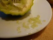 It did get a little "skunky" and did not settle the best in my stomach if I ate the peel from more than about a third of one of the little fruits, but nevertheless I could enjoy eating and nibbling on a little bit of the fruit, and I think lemon lovers would think the same. Interesting flavor, to me almost like halfway between lemon and lime but with a little bit of the pungent character of Yuzu, and also with a little bit of a "woody" aroma. I would say as easy to eat as the peel from Satsuma mandarin, perhaps a little bit easier in some ways. I mean it was more tender, maybe even slightly more tender than the peel of a Yuzu freshly picked off the tree that is completely ripe, but it is very "lemony" and has a hint of bitterness (still a little less than the peel of Satsuma mandarin) and can get kind of "skunky" if you eat more than a small amount of it.