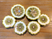 The inside of the Ichang papeda fruits I tried looked like something between Kaffir lime and Yuzu, but slightly worse inside fruit quality than that, with a little less juice than even those have.