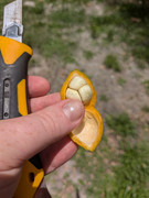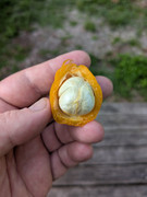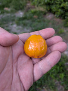 I found a recently fallen fruit at the bottom of the pot on mine, and ate it. Mine was very soft and springy like a tiny water balloon or a soft wad of bubble gum, and sort of burst when I bit into it. Mine only had one tiny seed, not three huge ones like in the picture above. The taste was meh, though. Somewhat sour, not sweet. Not unpleasant, but not something that seems worth growing. Maybe if mine continues to produce fruits with high flesh to seed ration and good texture it might be worth cross-breeding? I'll report back as I get to try more fruits from it.