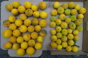 In every case I chose the softest one for testing. This wasn't a good choice for all of them, you will see my edited comment at Poncirus#7. And I had two Poncirus #8 fruits, one of which was used for the test but it's already losing quality. I didn't cut up the other one for a retaste because my refractometer will arrive next week and I want to do a measurement on them all. If the second fruit is any better, I will update the post, and I will add the Brix data as well.