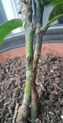 Well first, I would unwrap the graft union. It looks like there are several layers of tape wrapped there and it could be restricting both rootstock and scion. If it’s been 6 months, the union should be healed. The graft has definitely “taken” after that long and 2 pushes. Another possibility is nutrients in the soil. I have a neglected graft in a pot from 3 years ago that has pushed twice in that time because the soil has zero nutrients in it. If the rootstock is pushing, that’s probably not the issue.